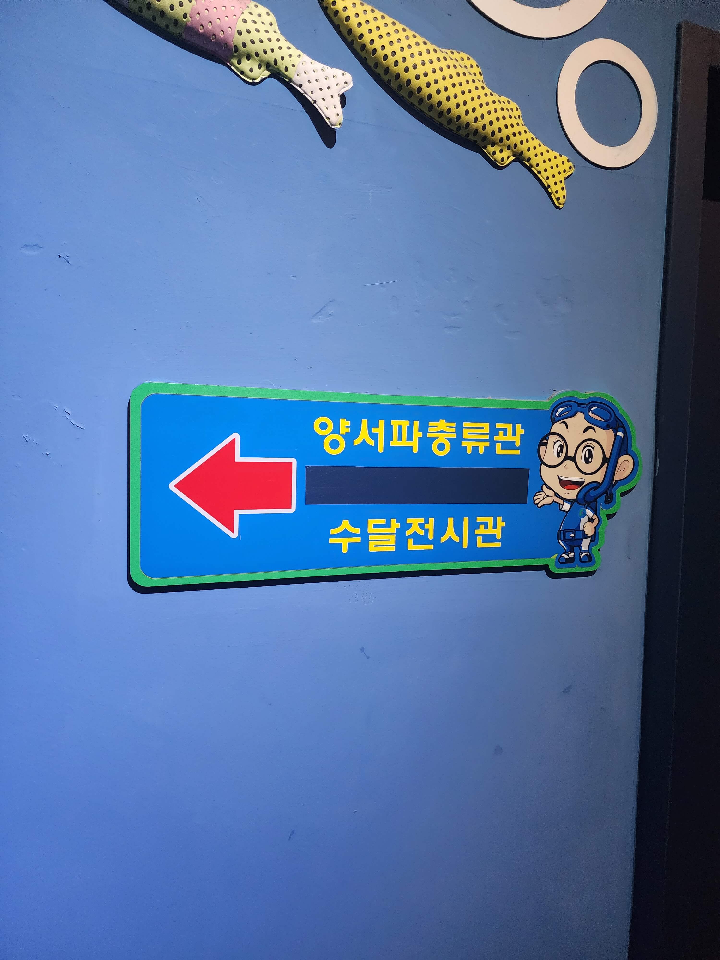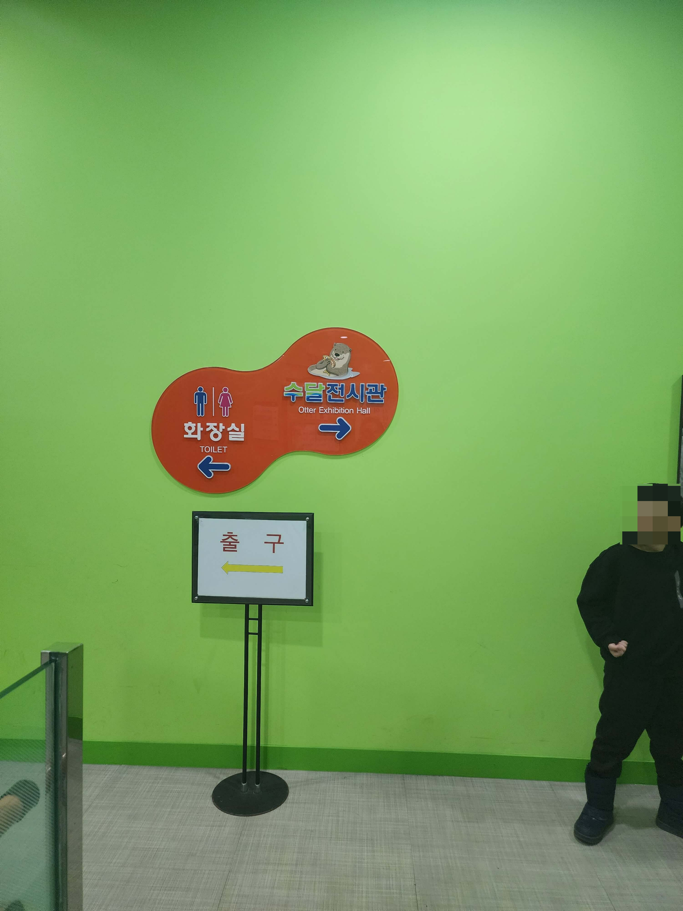 - 이달의 물고기 위치 표지판이 있고 구경하는 중간에 화장실도 마련되어 있어요