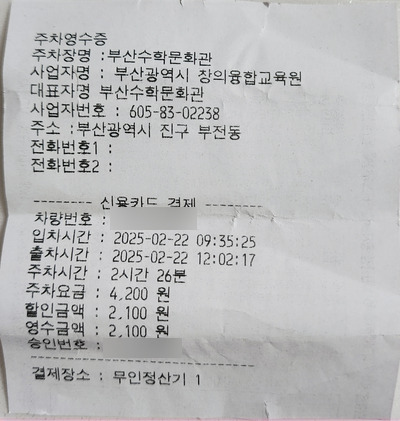 다자녀가정이라 주차부스에서 확인하고 50% 할인받았어요^^