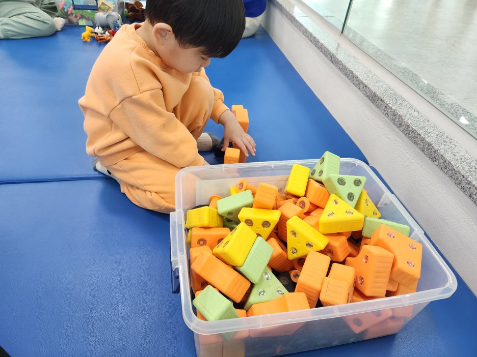 저는 상콤이랑 블록도 하고 퍼즐도 하고 팽이 의자에 앉아 보았어요