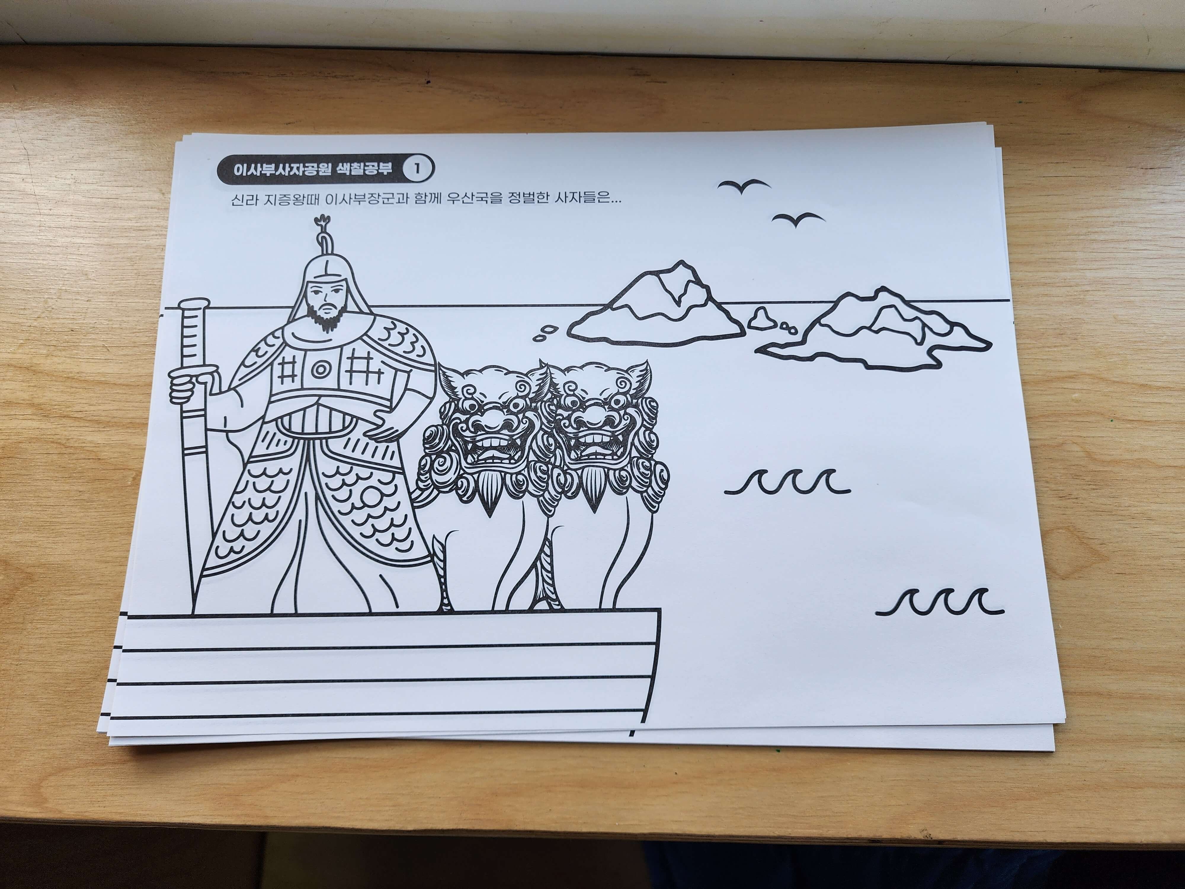 이사부관으로 들어가면 책종류도 많이 있고 이사부장군 색칠공부를 할 수 있게 마련되어 있어요