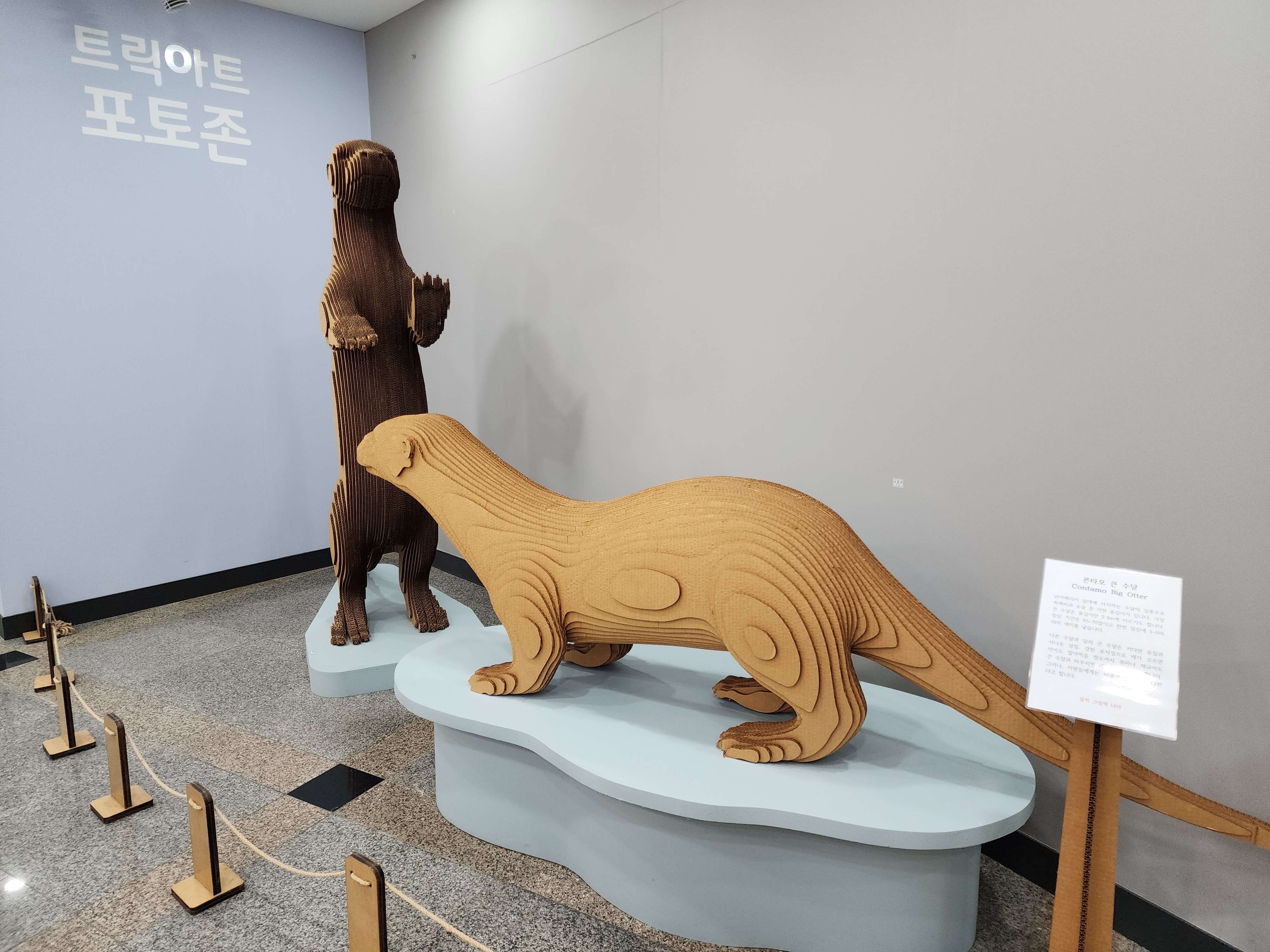 내려오니 바로 앞에 이사부장군 초상화와 수달과 함께하는 트릭아트 포토존이 있어요