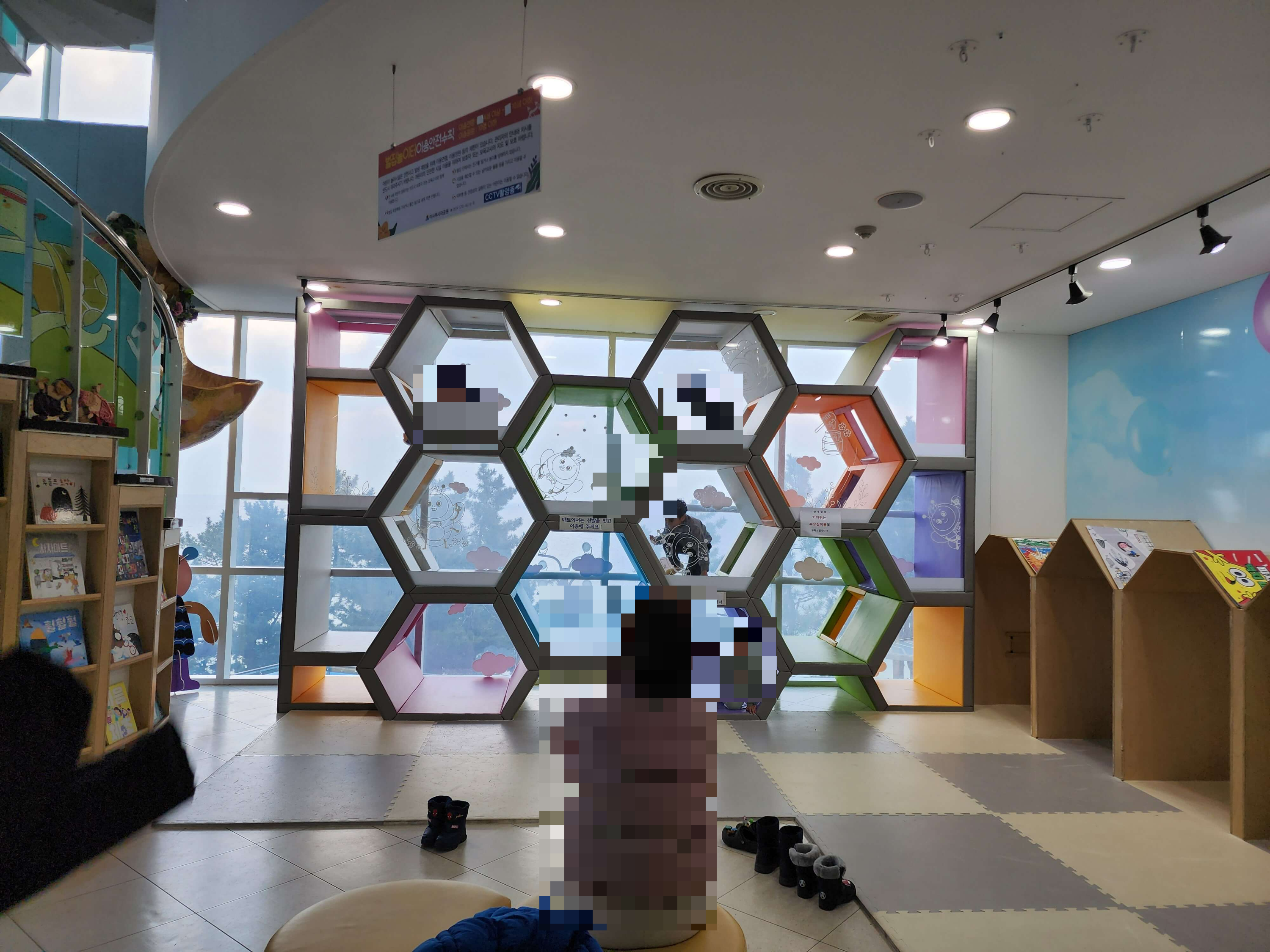 2층으로 올라오면 작은 놀이터가 하나 있고 그 옆으로 넓은 공간은 책을 읽을 수 있는 공간이에요