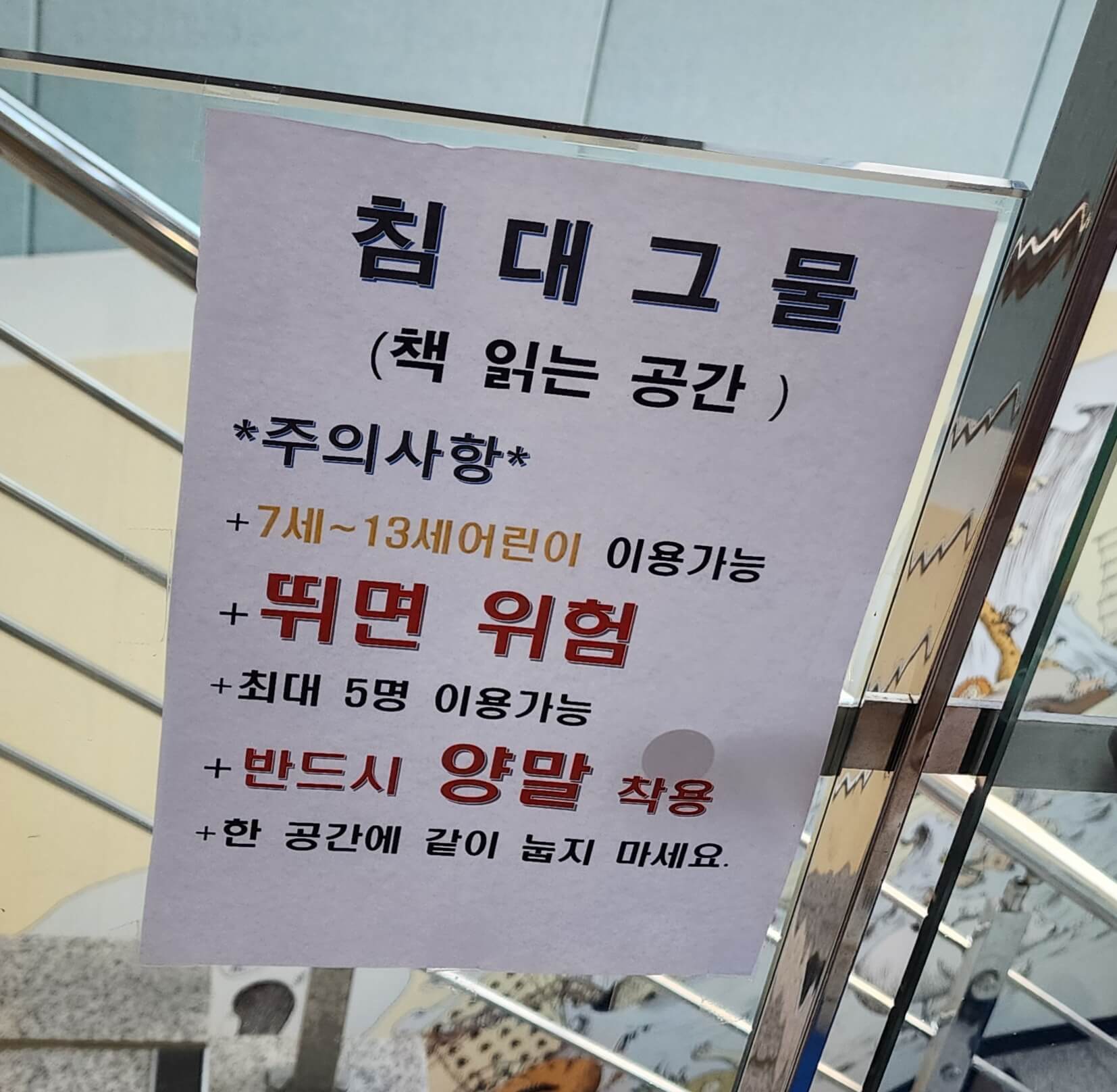 여기는 놀이터가 아닌 책을 읽는 공간이라고 해요