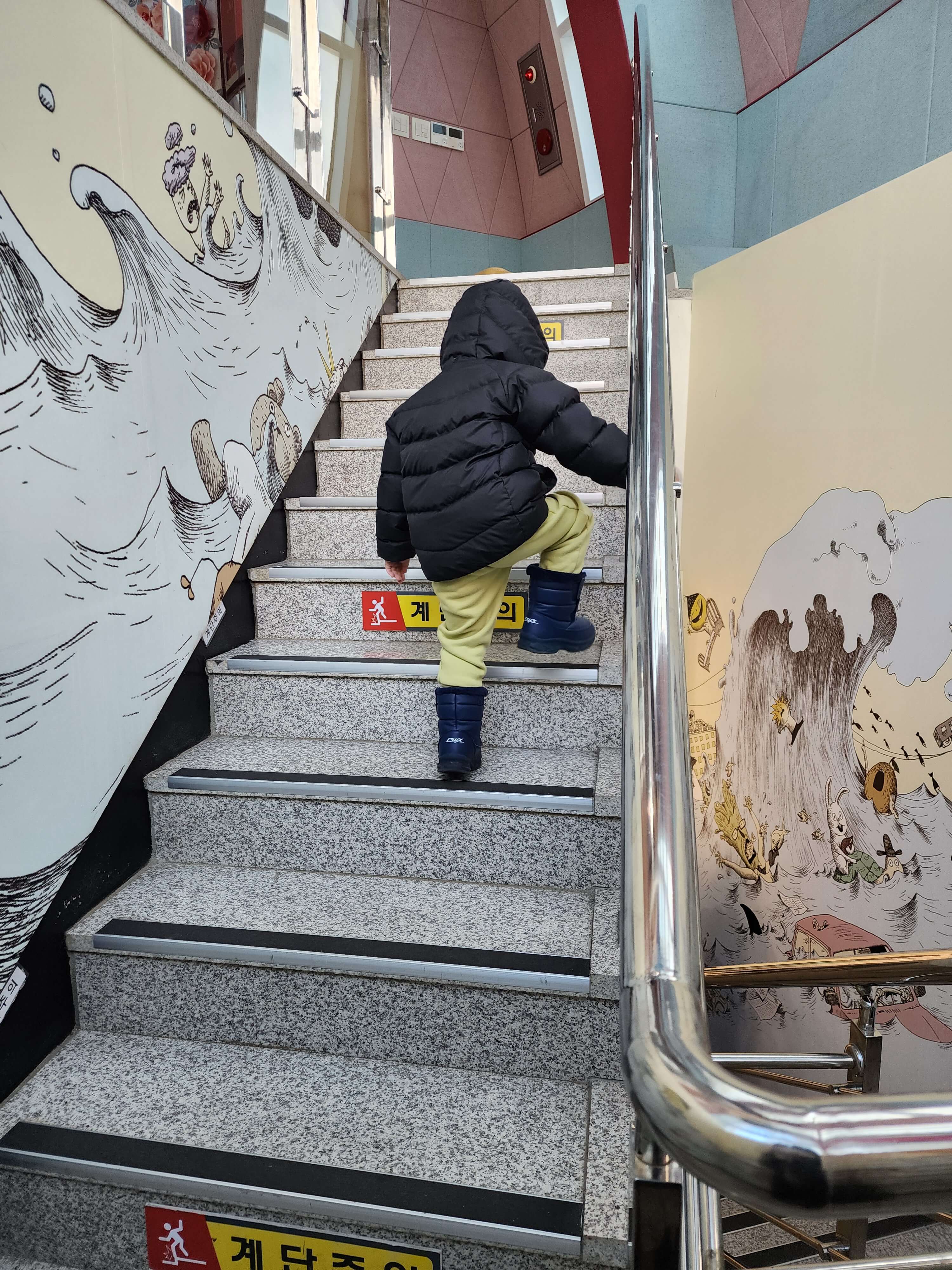 그날은 엘레베이터 공사 중이라 계단을 이용해 1층으로 내려왔어요