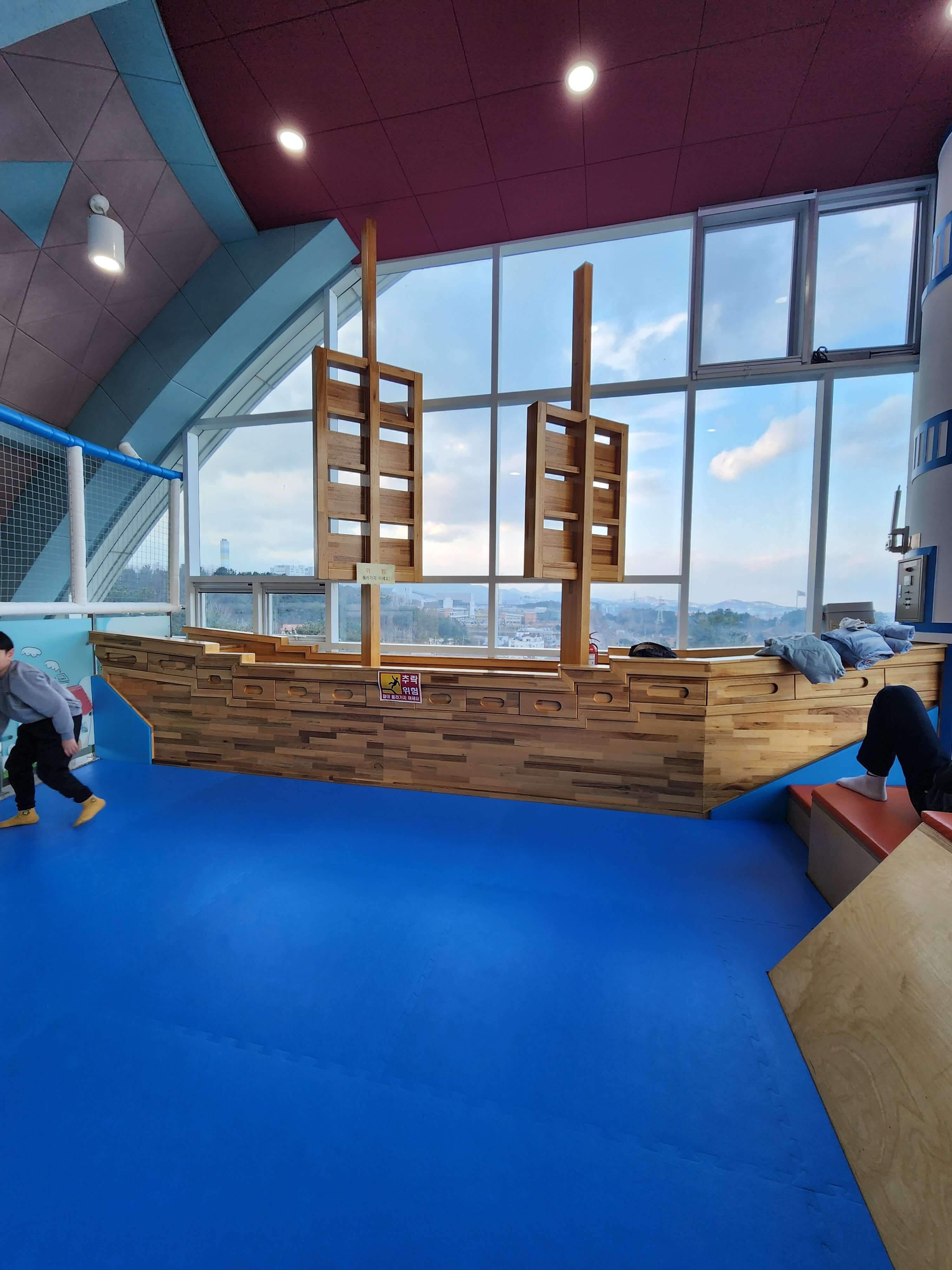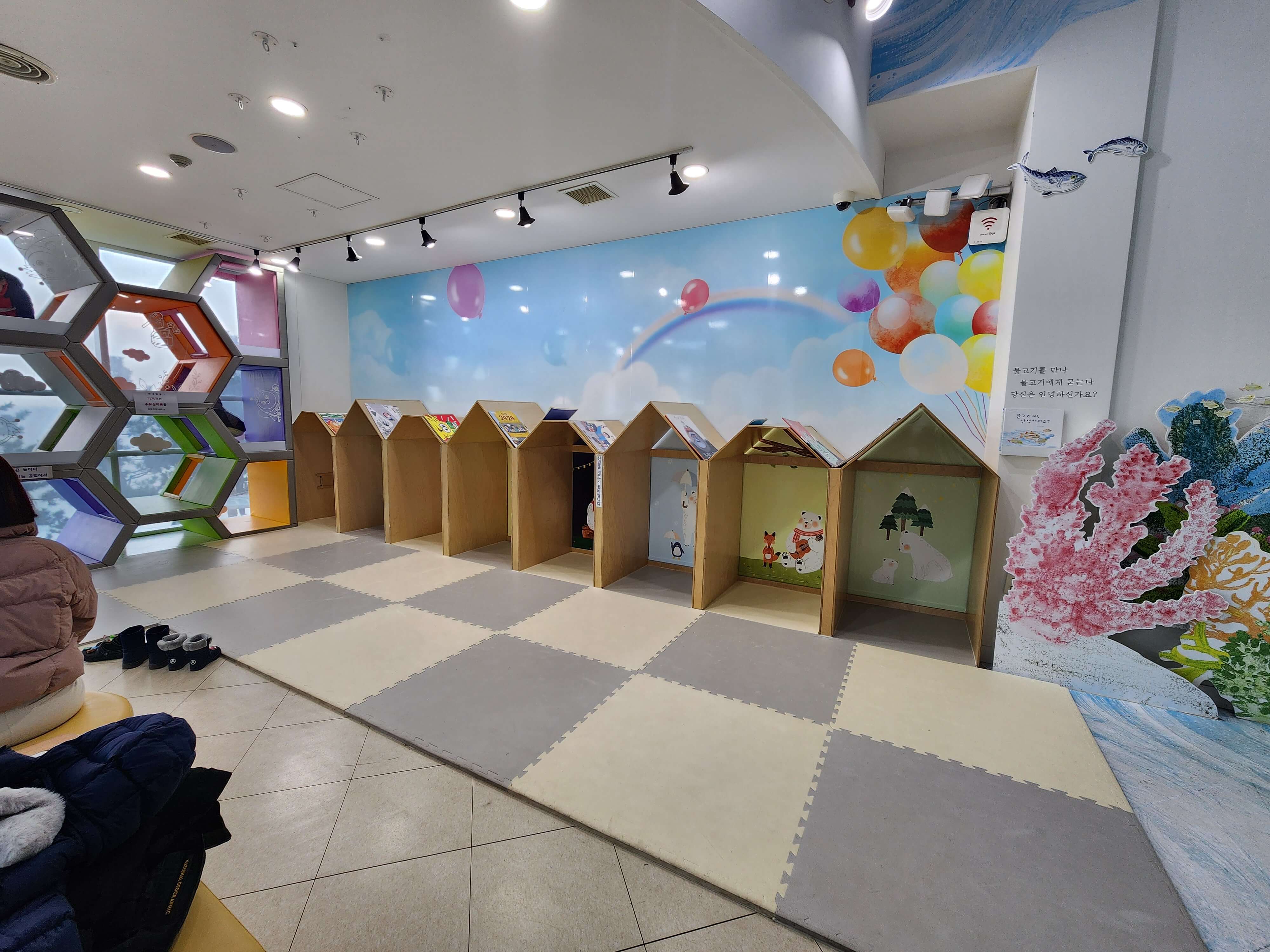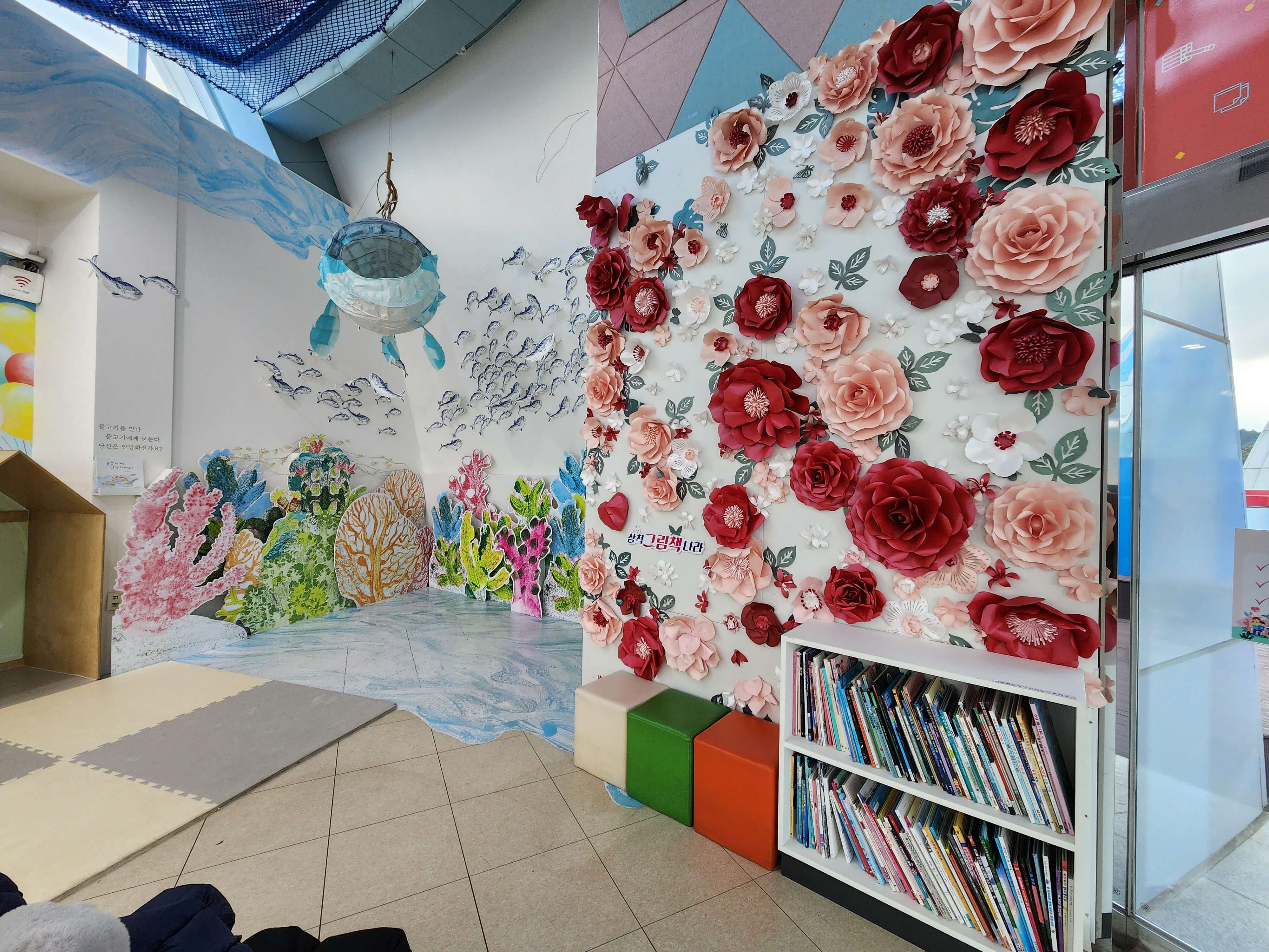 2층으로 올라오면 작은 놀이터가 하나 있고 그 옆으로 넓은 공간은 책을 읽을 수 있는 공간이에요