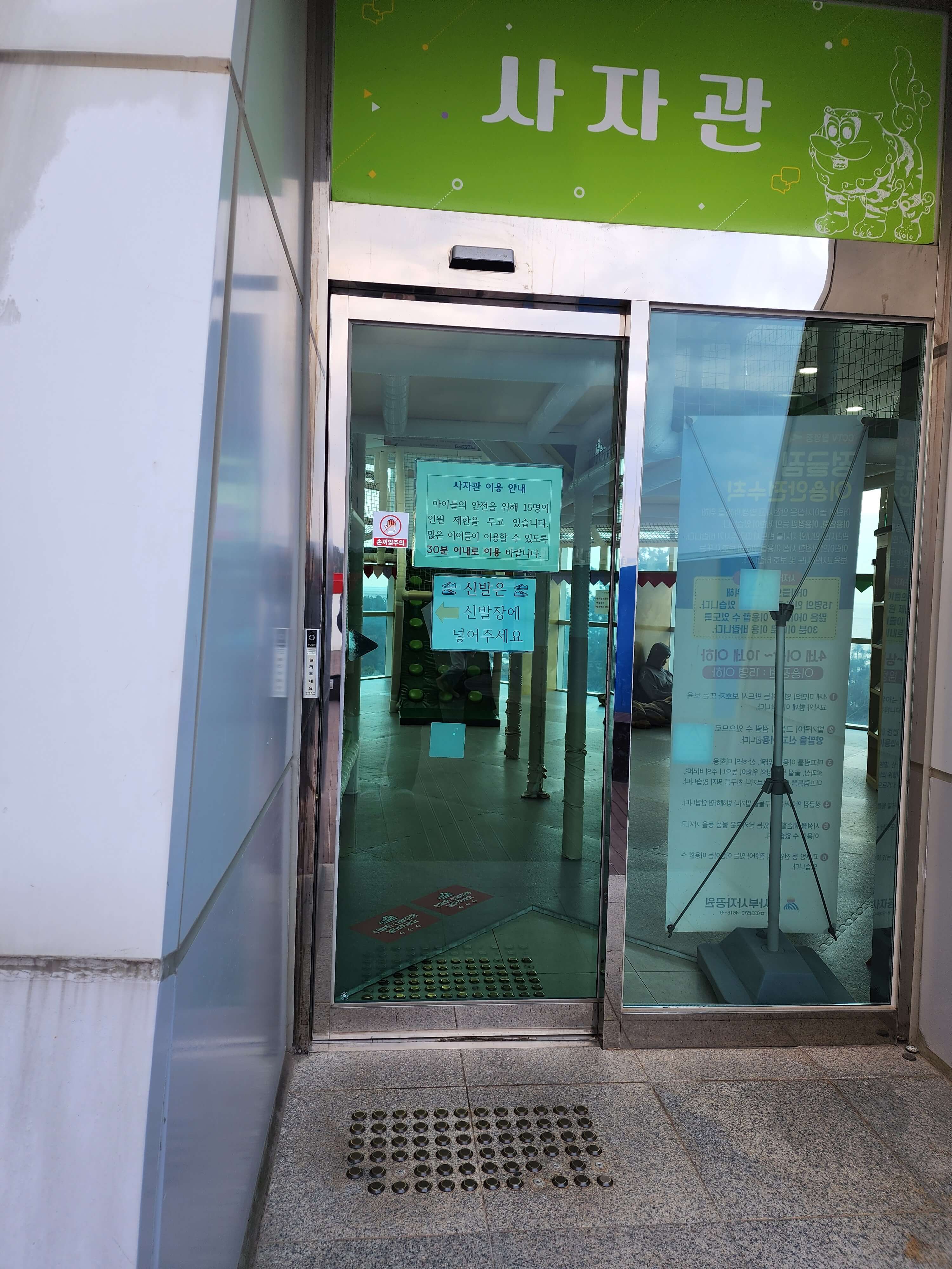 자동문을 통해 밖으로 나오면 그림책관 / 사자관 / 이사부관으로 나누어져 있어요