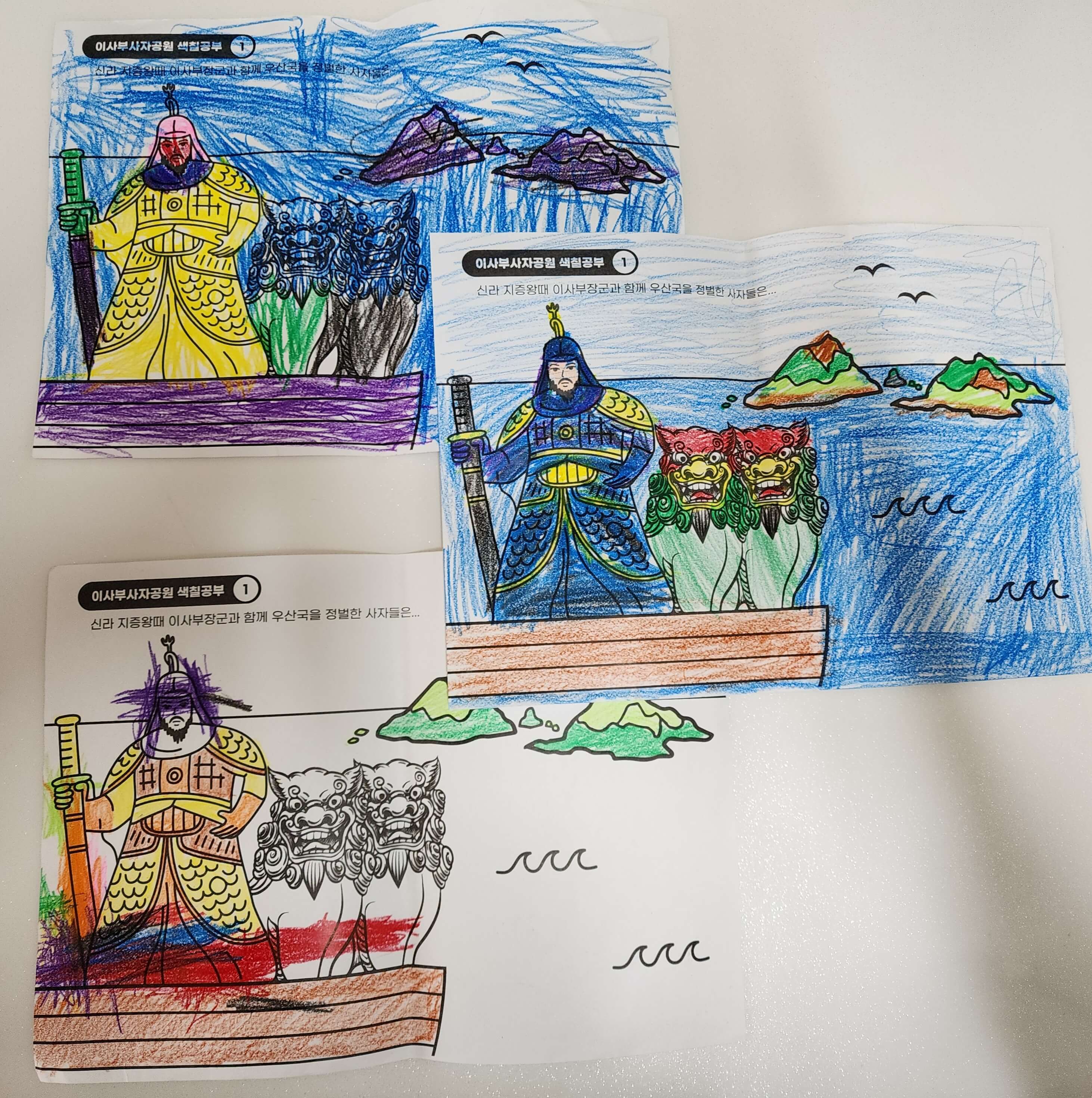 이사부관으로 들어가면 책종류도 많이 있고 이사부장군 색칠공부를 할 수 있게 마련되어 있어요