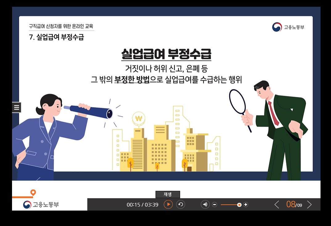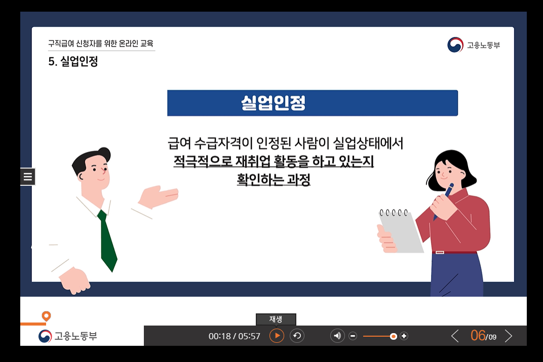 • 수급자격 신청자 교육이수구직신청사전에 필수로 진행하기
