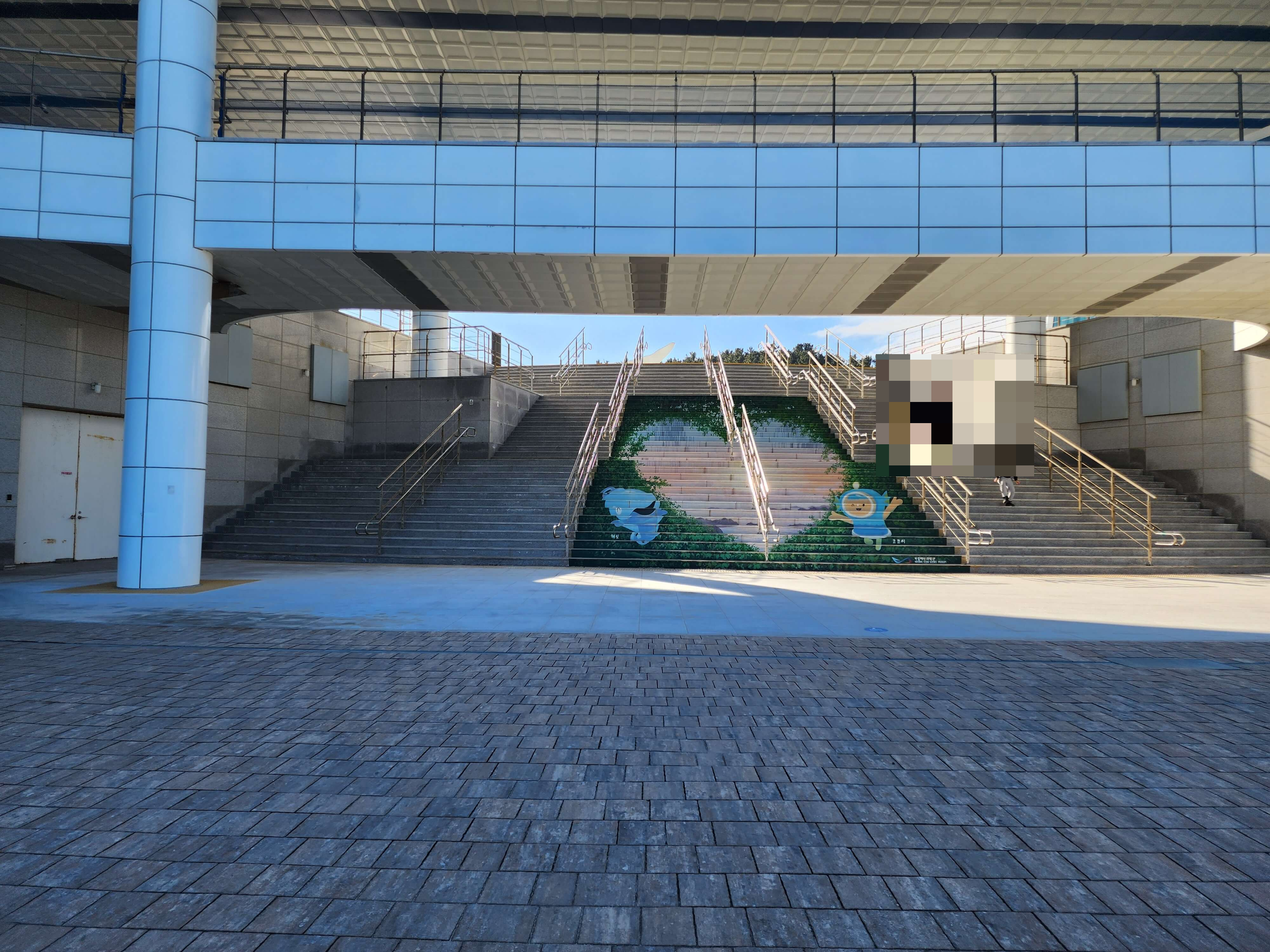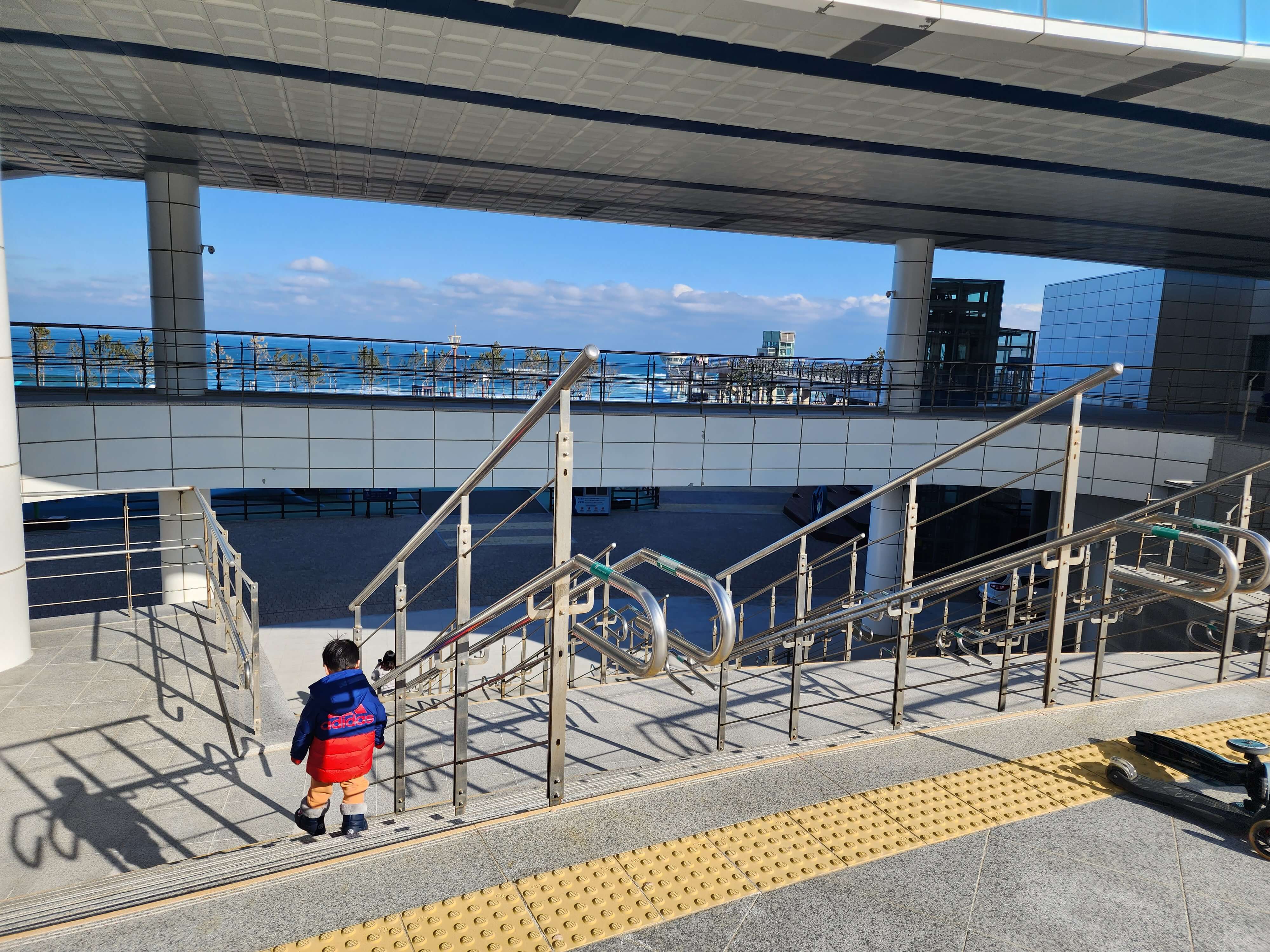 - 1층으로 내려와 밖으로 나오면 내려가는 계단이 있어요 여기로 내려가면 파도소리 야외 놀이터가 나와요