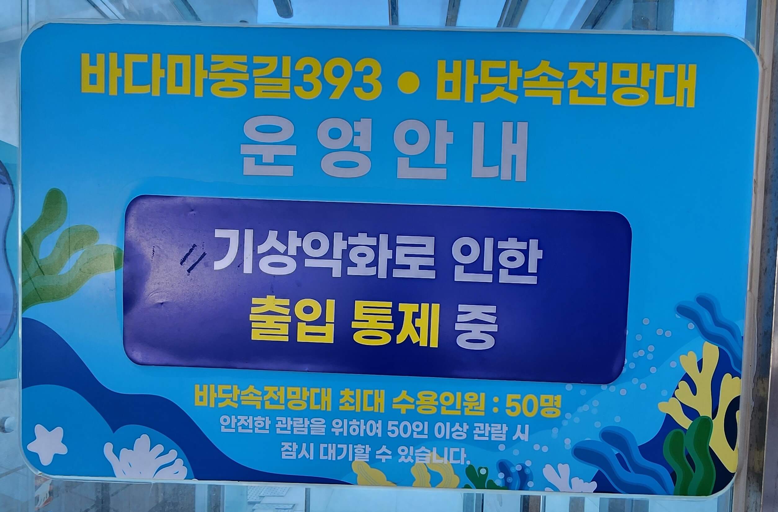 - 제일가보고 싶었던 곳인데 날씨가 좋지 않아서 출입 통제 되었어요