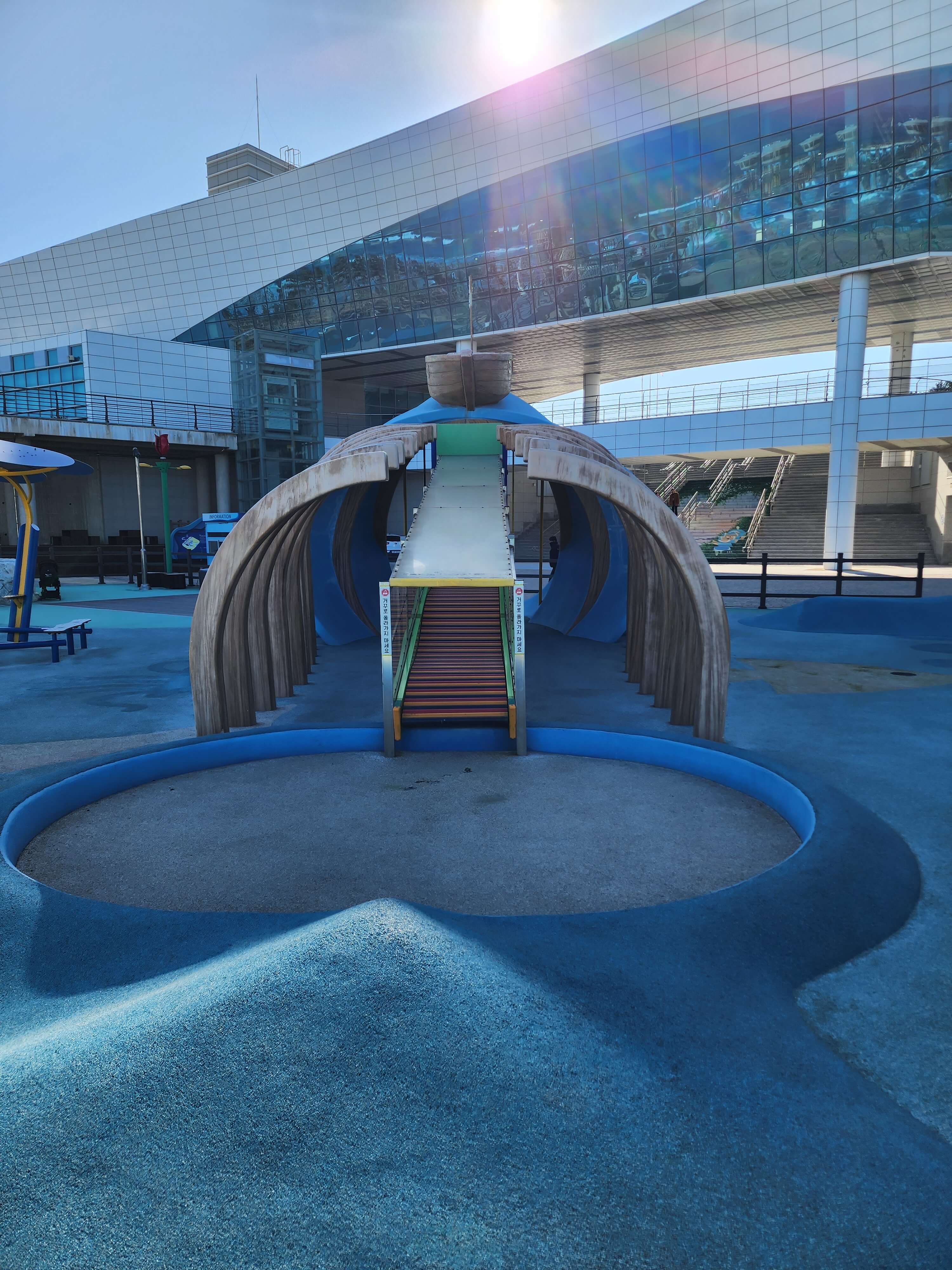 • 1층으로 내려와 밖으로 나오면 내려가는 계단이 있어요 여기로 내려가면 파도소리 야외 놀이터가 나와요
