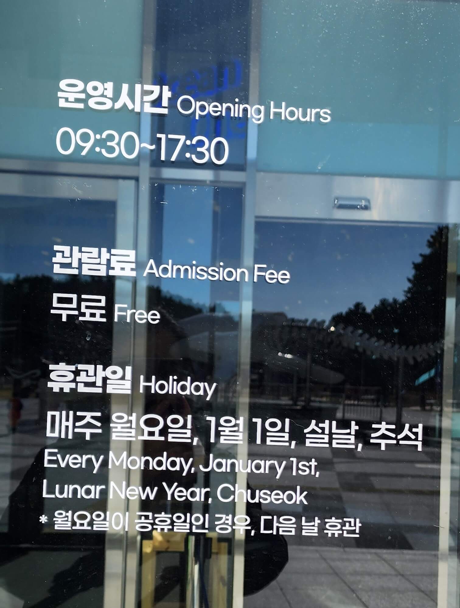 • 휴관일 : 매주 월요일 / 신정 / 설날, 추석 당일  / 월요일이 공휴일인 경우 다음날 휴관