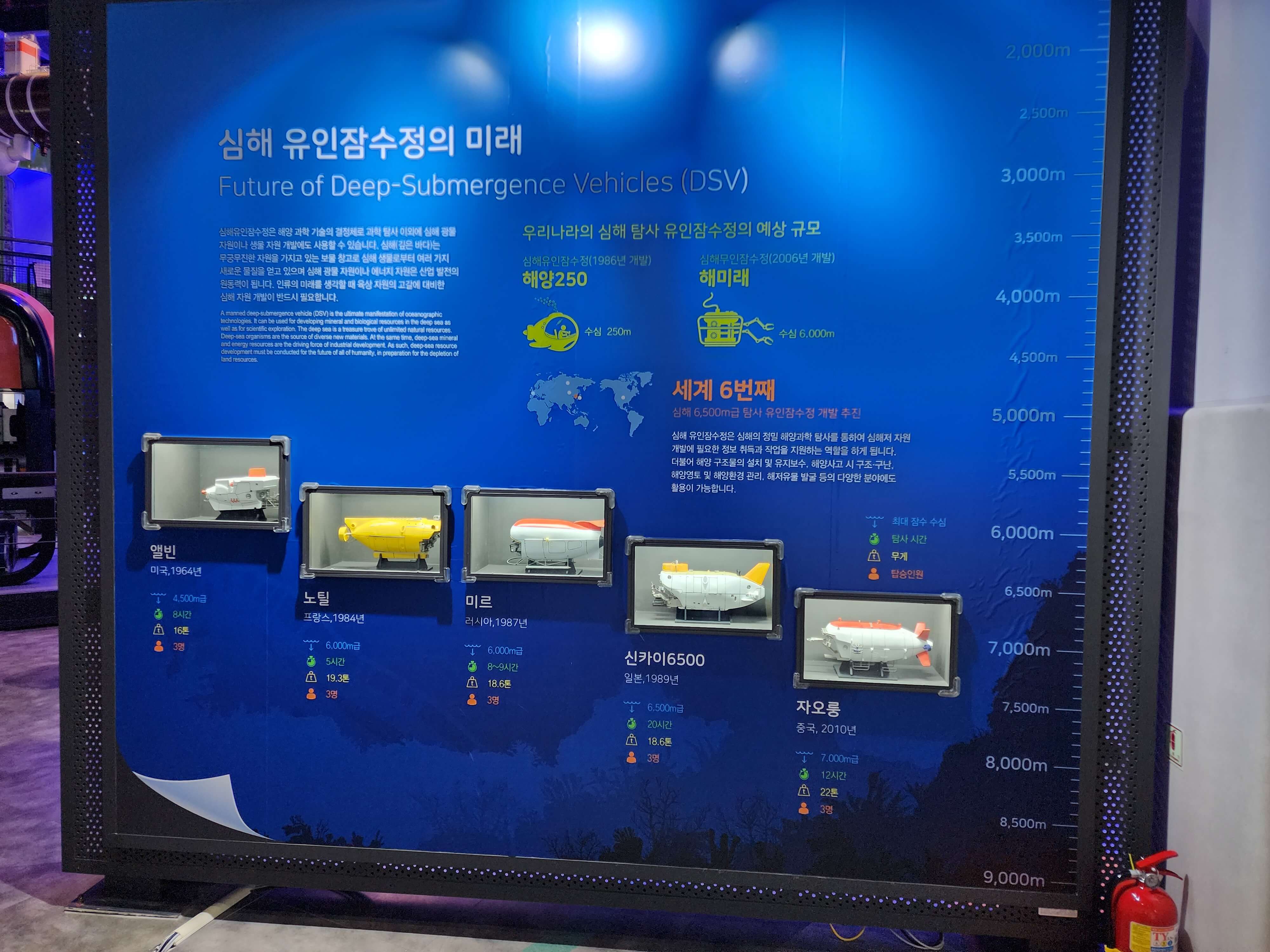 • 마리아나해구를 탐사하기 위해 만든 심해탐사선을 재현에 놓았어요