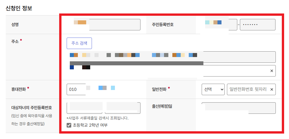 - 그 후 신청인 정보는 주소와 휴대전화 번호만 입력하면 나머지는 자동으로 입력되어 뜹니다.