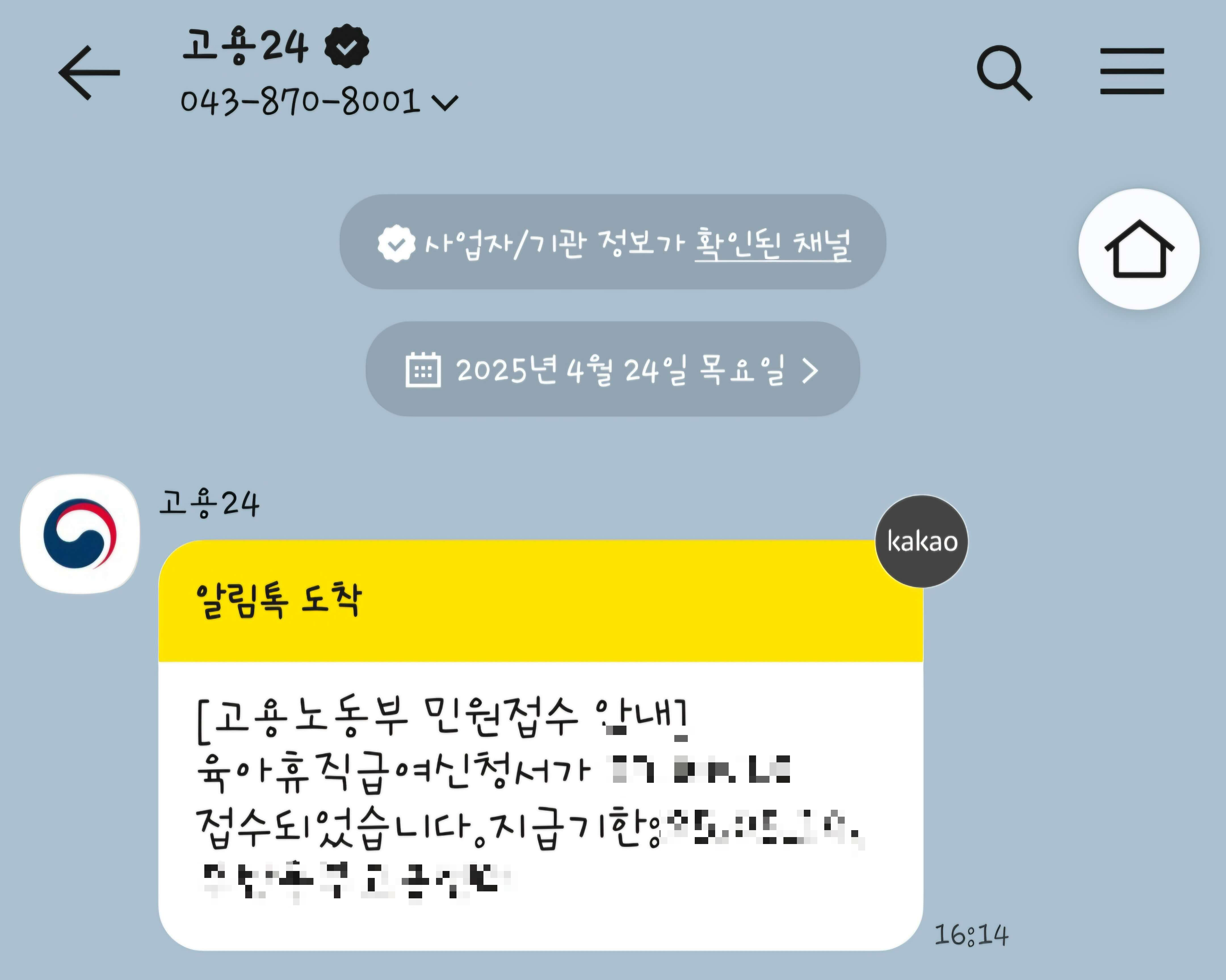 - 접수되면 카카오 알림으로 고용 24에서 알림톡이 옵니다.