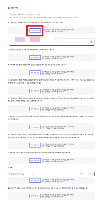 - 그다음 해당되는 곳에 첨부파일 등록 후 확인사항 체크와 동의서 동의 후 임시저장 누르기