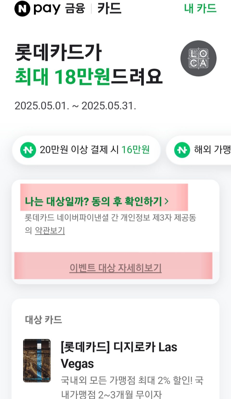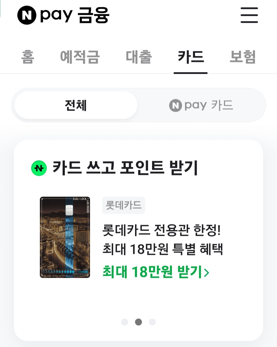 - 네이버페이에 들어가서 카드 배너에 보유하지 않은 카드 중 좋은 혜택이 있는 카드사를 선택한다.