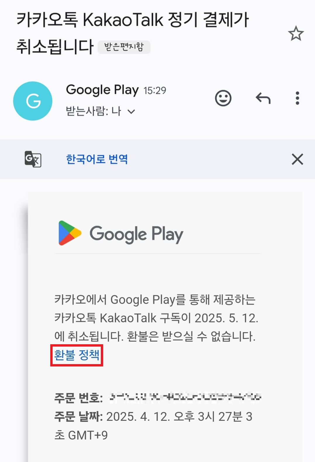 Google Play로 해지는 금방 되는데 환불을 받으려고 하니 과정이 조금 복잡하더라고요
