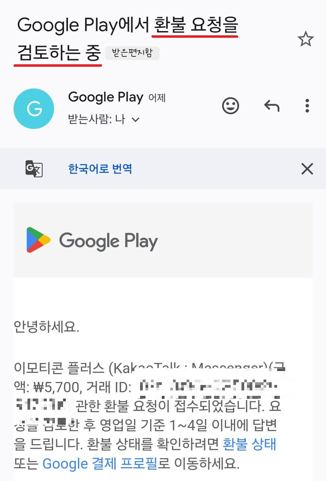 제가 Google Play로 환불 신청했던 방법을 알려드리겠습니다.