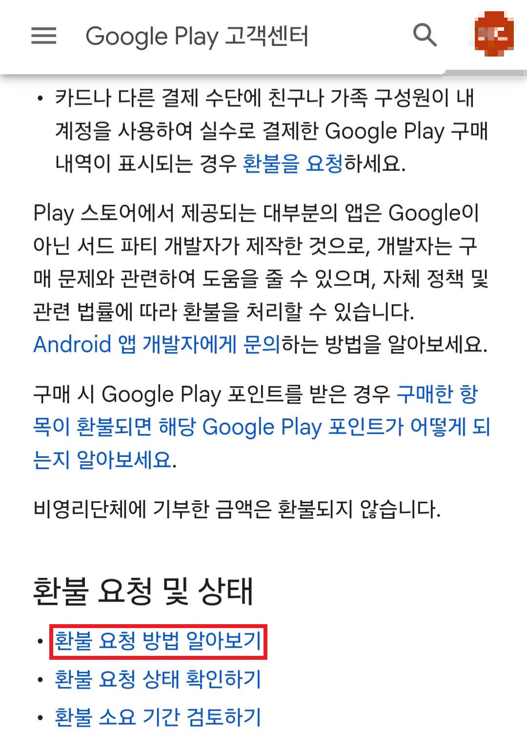Google Play를 통한 환불받는 방법