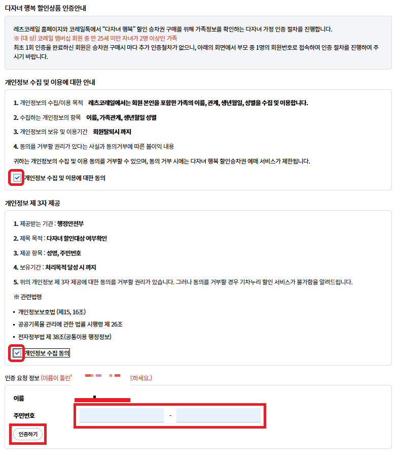 별도의 증빙서류 제출 또는 역방문 없이 '다자녀 행복' 할인승차권 구매가 가능합니다.