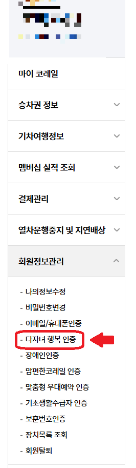 코레일 멤버십 회원 중 25세 미만의 자녀가 2명 이상인 다자녀 가족