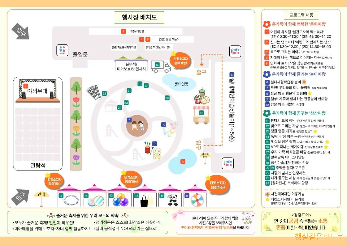 • 행사 내용 : 체험프로그램 다수, 문화공연( 1회 차:12시, 2회 차:14시 )