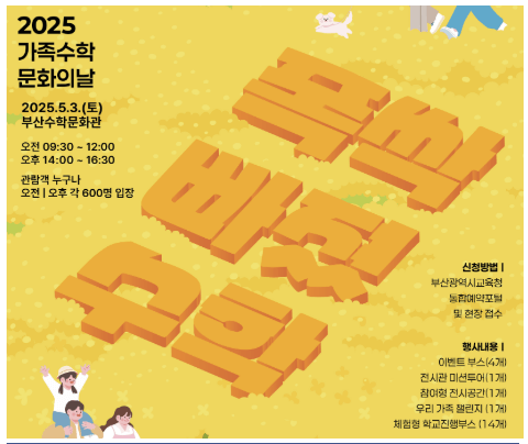 • 행사 신청 : 부산광역시교육청 통합예약포털에서 사전예약 및 현장접수 (오전, 오후 각각 600명 입장)