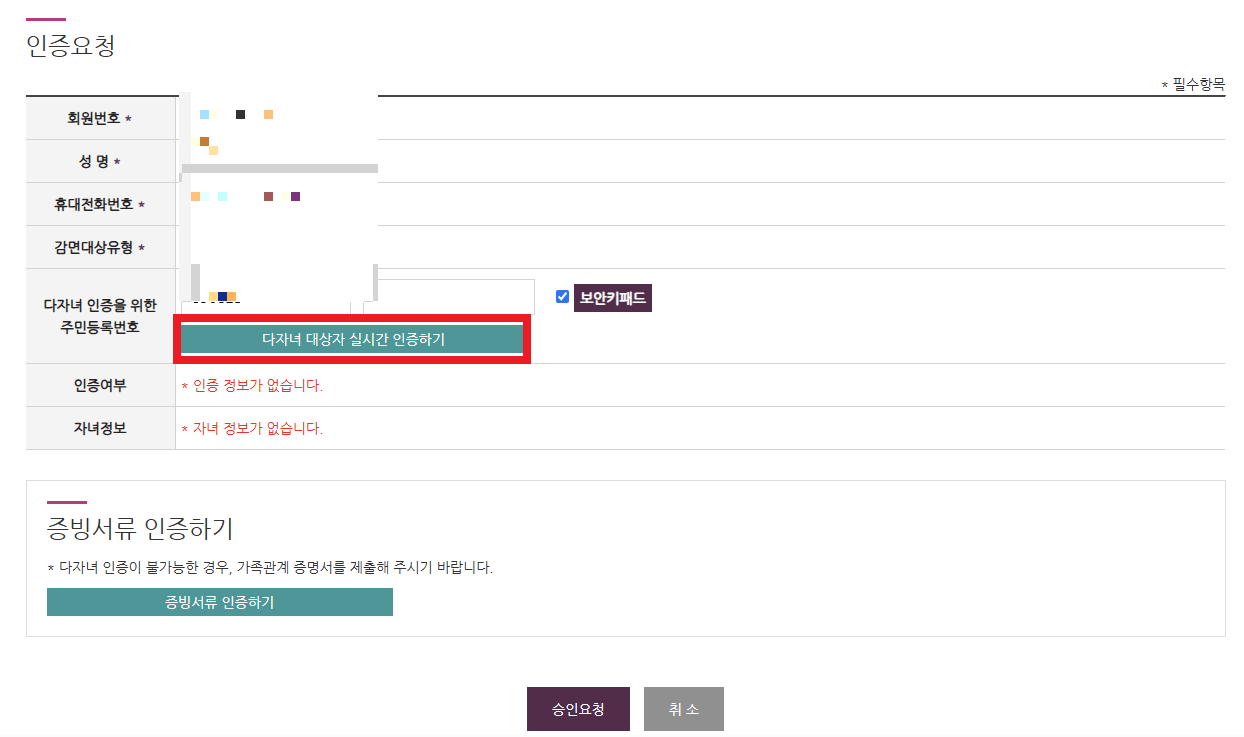 - 다자녀행복 가족정보 인증하기