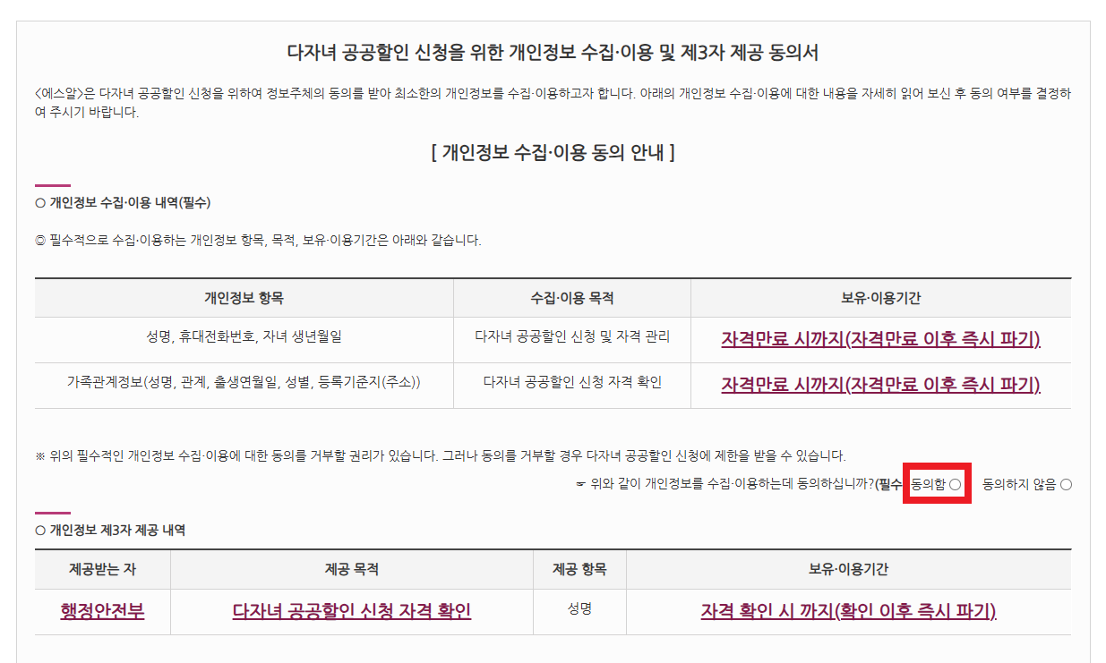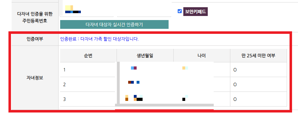 다자녀 가족 할인 가족정보 온라인에서 인증이 되지 않은 경우