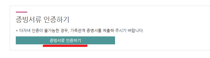 그리고 혹시나 다자녀 인증이 되지 불가능한 경우는 증빙서류 인증하기를 통해 서류를 제출하고 인증할 수 있습니다.