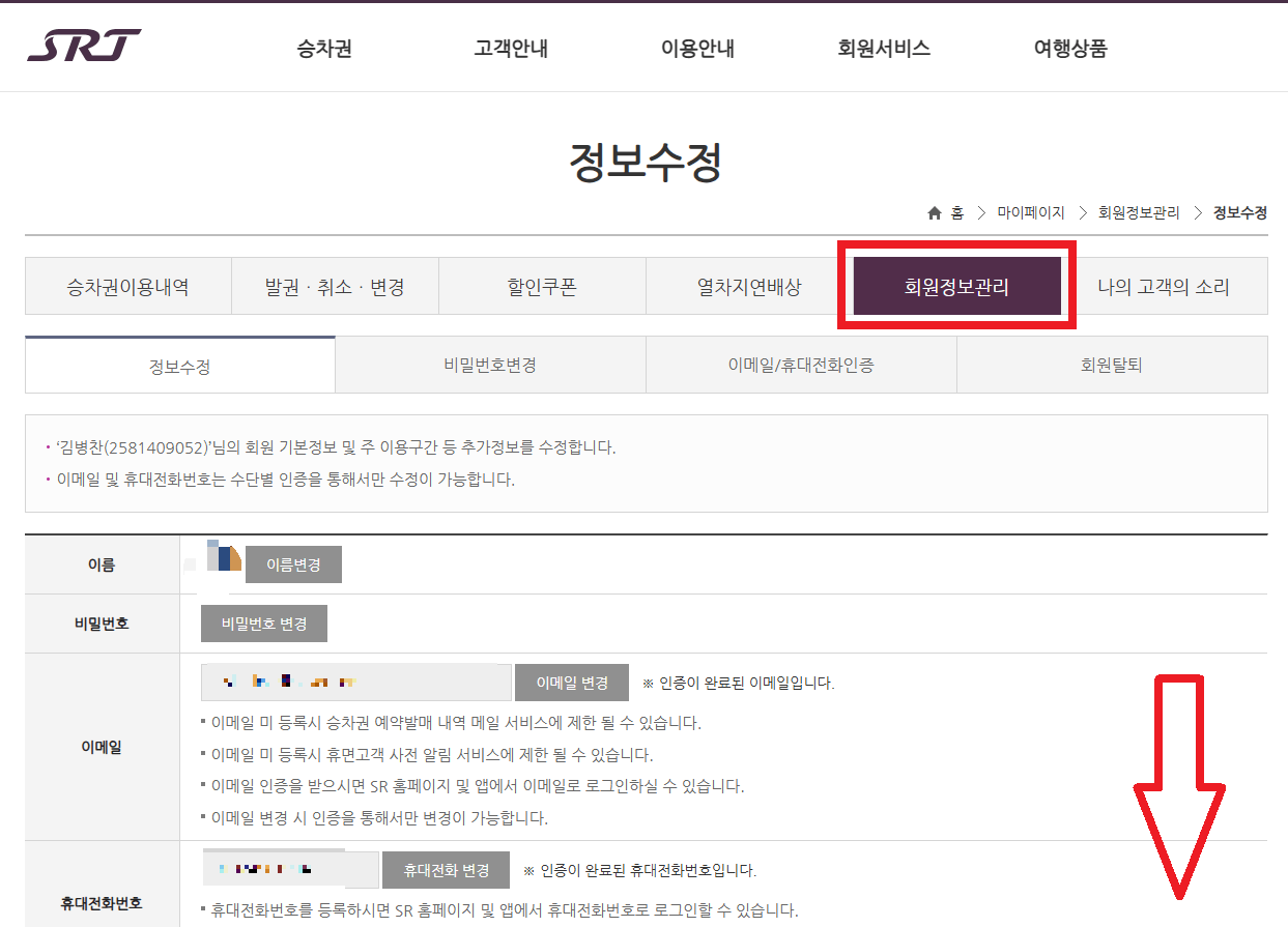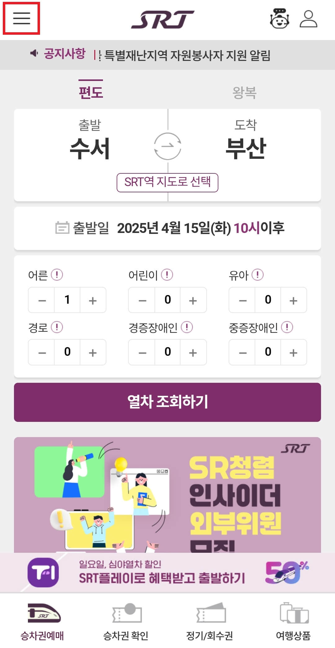 - SRT 홈페이지를 통한 신청